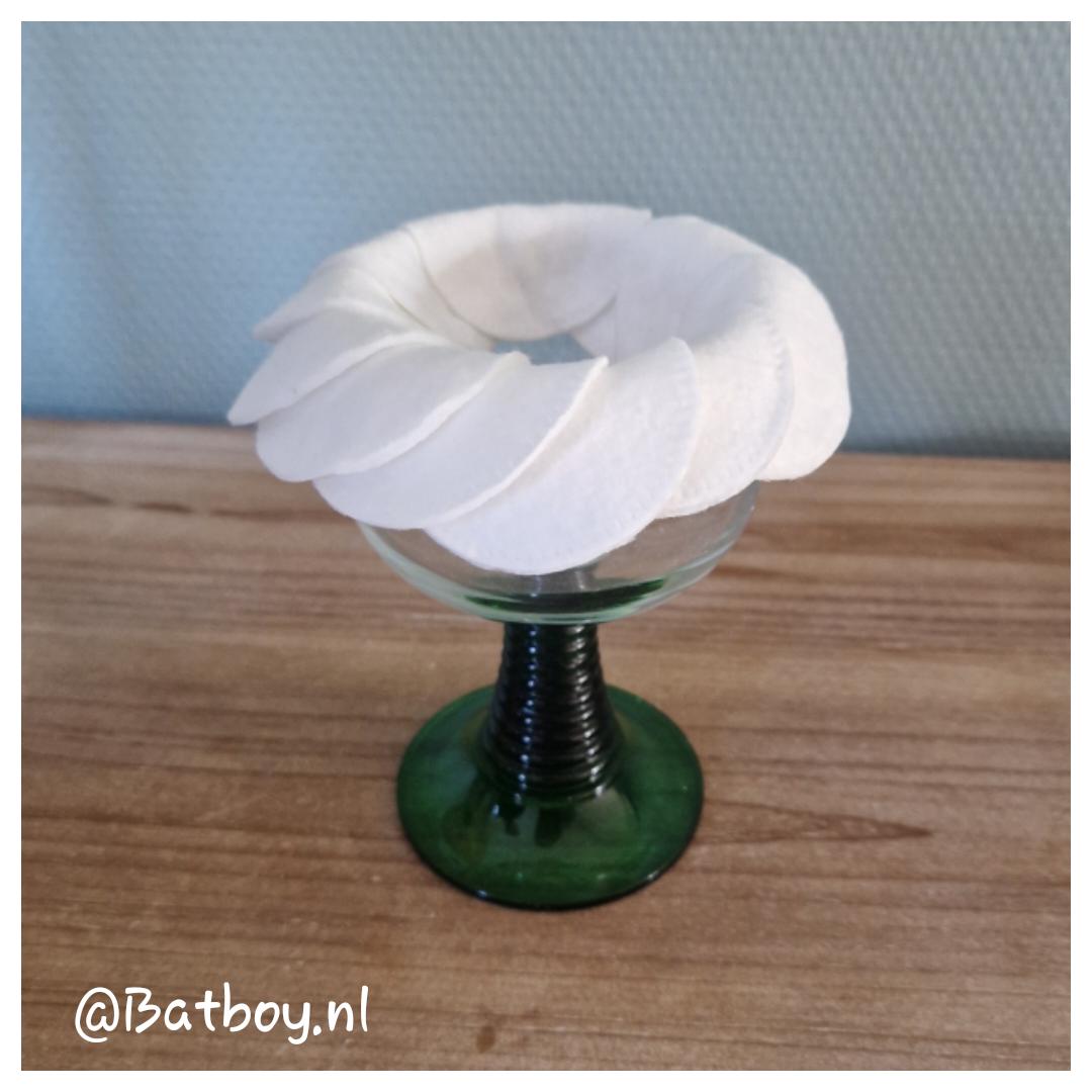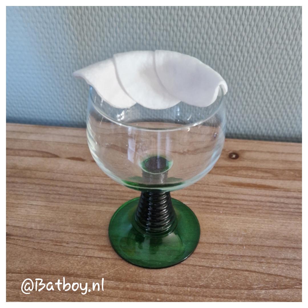 • Vouw de wattenschijfjes voorzichtig om de rand van het glas.