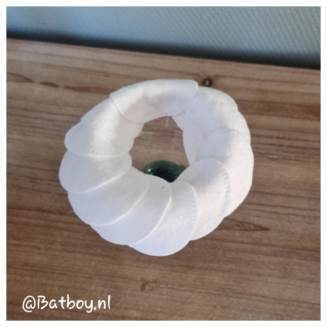 • Ga net zolang rond totdat de rand helemaal vol is met wattenschijfjes.