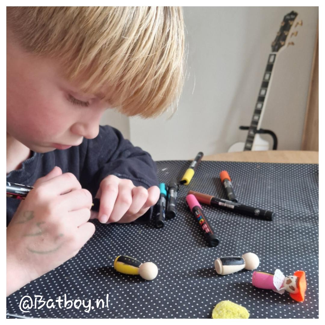 Je kan de houten figuurtjes natuurlijk verven, maar dan duurt het wat langer voordat het droog is. Met posca stiften is dit echt ideaal!