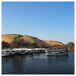 Een wandeling langs de kade of een boottocht geeft een ander perspectief op de omgeving. Dit contrast tussen drukte en rust is kenmerkend voor Egypte.